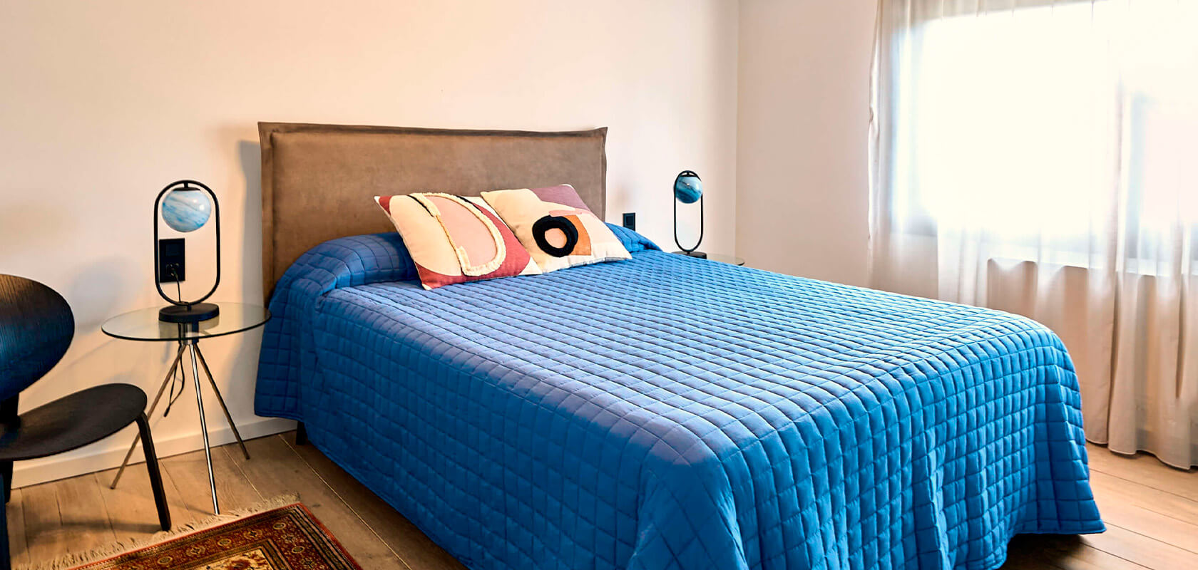 This room provides a contemporary retreat with stylish modern furniture. The room is bathed in natural light, thanks to large windows that offer mountain views. The room has access to a large private bathroom with shower.